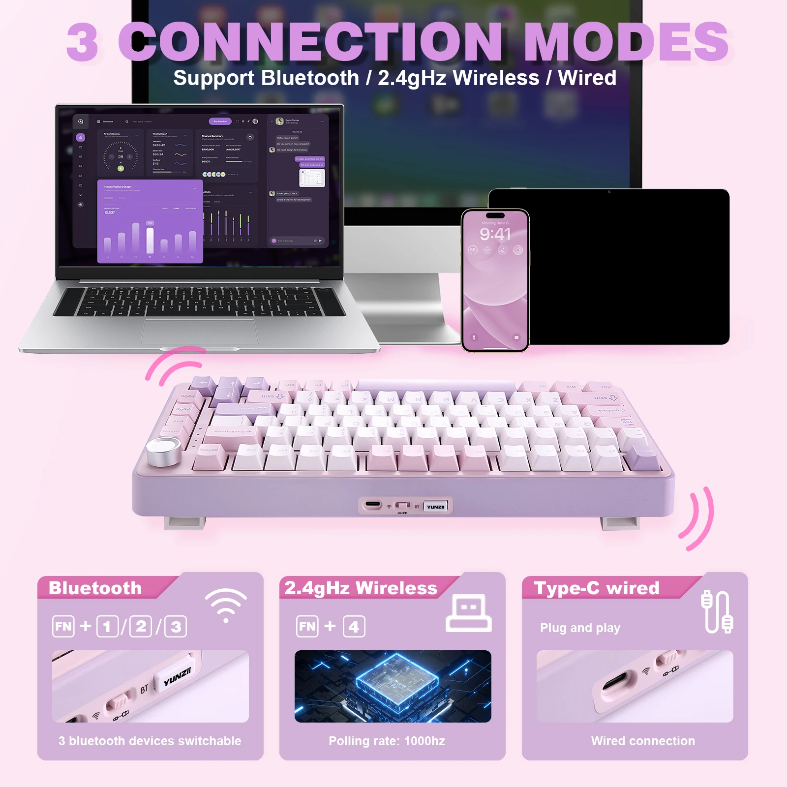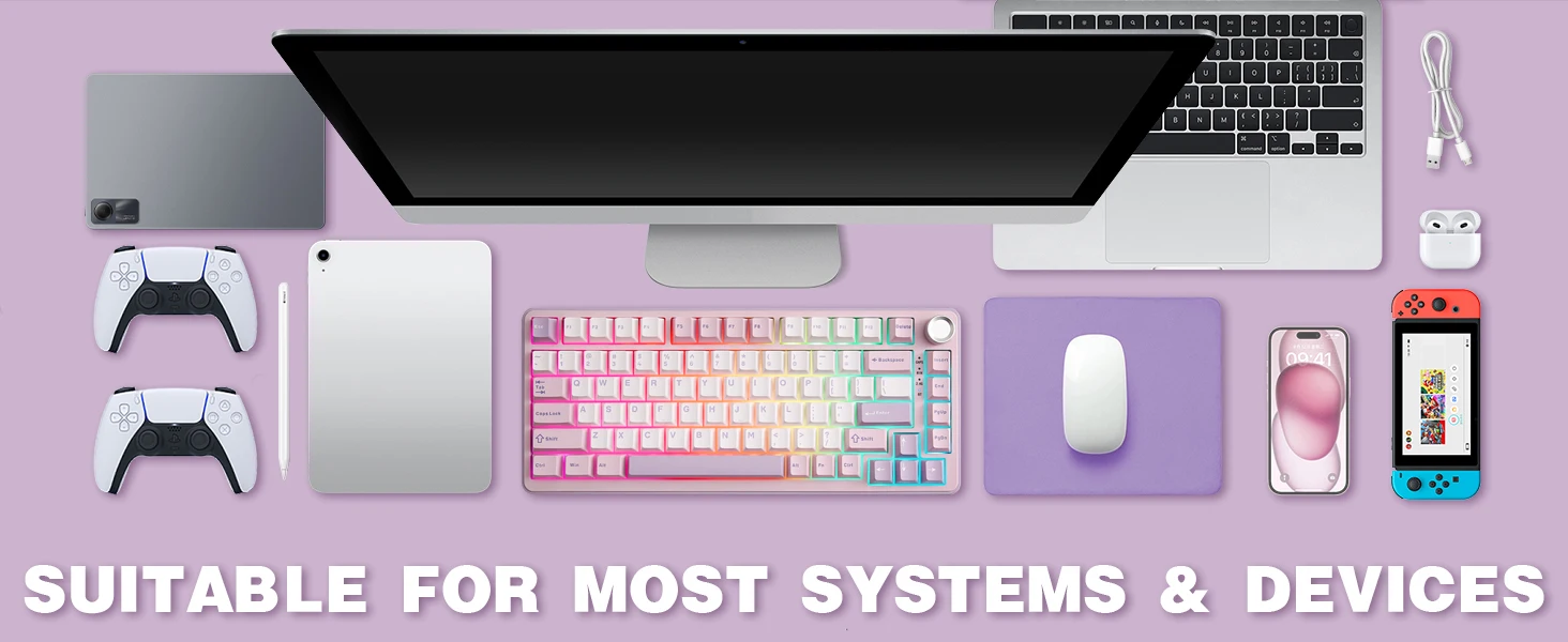 This mechanical keyboard takes full-key hot-swappable sockets and ultra-responsive low latency. The high-quality PCB board of the custom keyboard compatible with 3-pin or 5-pin switches, meets your desired typing feel, whether it's for gaming, typing, or creative endeavors. Pre-lubed linear and tactile switches have a unique design, solid sound, and excellent keystroke feel.